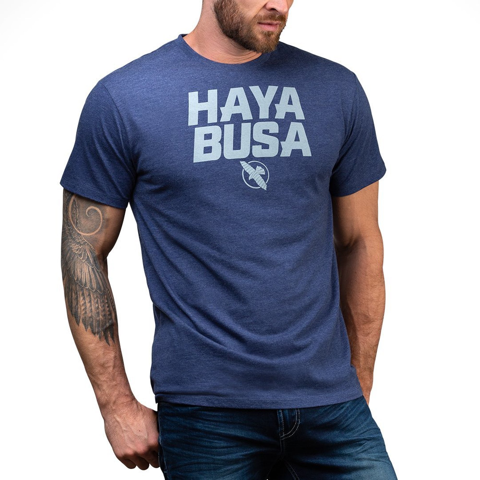 Hayabusa Logo Casual T-shirt una camiseta clásica con cuello redondo y un logotipo la marca. Hecho con algodón duradero costuras reforzadas, ajuste cómodo y relajado. Tu nueva camiseta para esos días de patio de verano después del gimnasio.