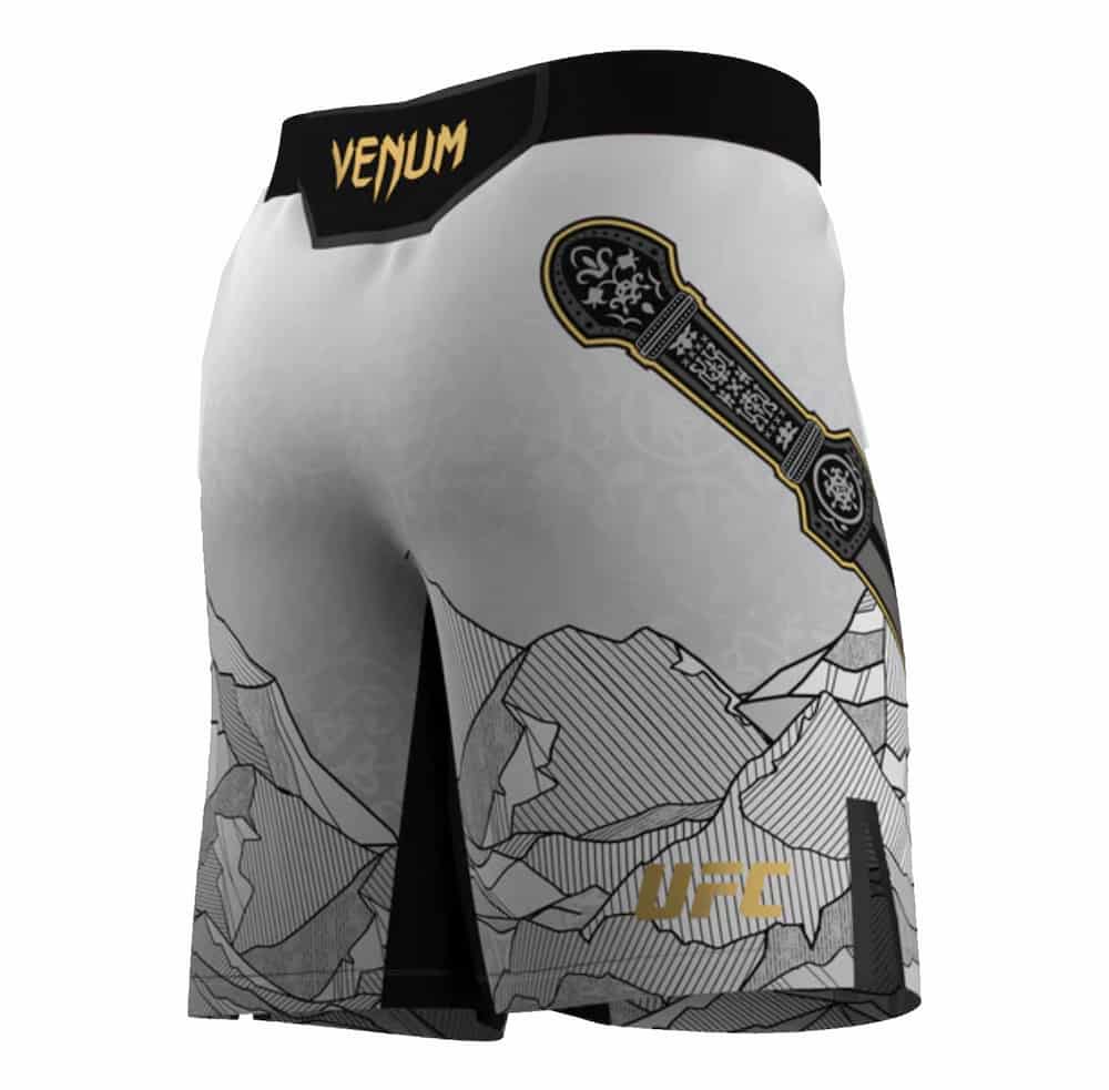 Presentamos la colección UFC Unrivaled by VENUM, una línea de pantalones cortos de combate de edición limitada confeccionada en colaboración con atletas selectos de la UFC para luchadores y fanáticos por igual. Este auténtico pantalón corto de combate es el modelo exacto que usa Makhachev, confeccionado con tela liviana y flexible y aberturas laterales pegadas con calor para mayor libertad de movimiento. Al diseñar este pantalón corto, Makhachev eligió representar su orgullo nacional con gráficos inspirados en la República de Daguestán.