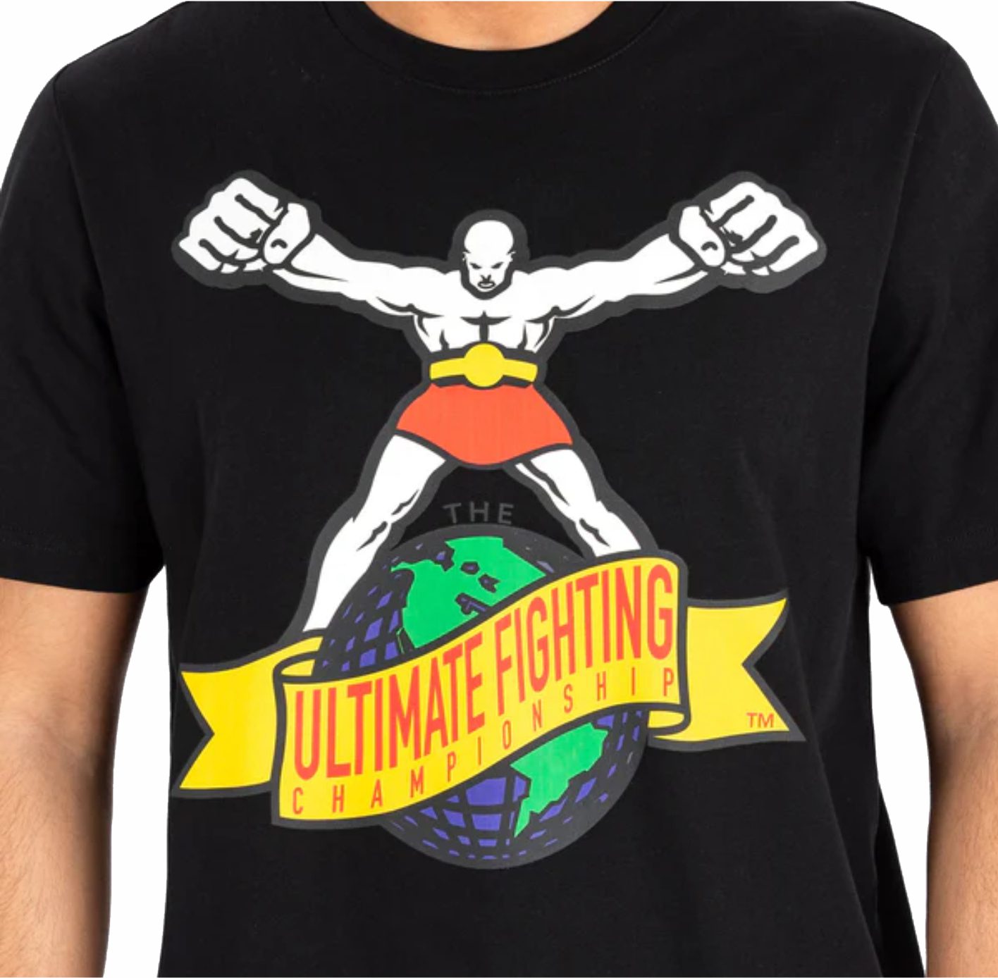 Presentado originalmente en el lienzo del octágono en UFC 1 en 1993, ¡Ulti-Man está de regreso! Celebre una parte de la historia de UFC con la camiseta UFC by Venum Ulti-Man. En esta camiseta gráfica negra con cuello redondo, el icónico logotipo de Ulti-Man en gris ocupa un lugar central, mientras que un parche de la marca se ubica en la cadera. El logo de Venum aparece en la parte trasera del cuello