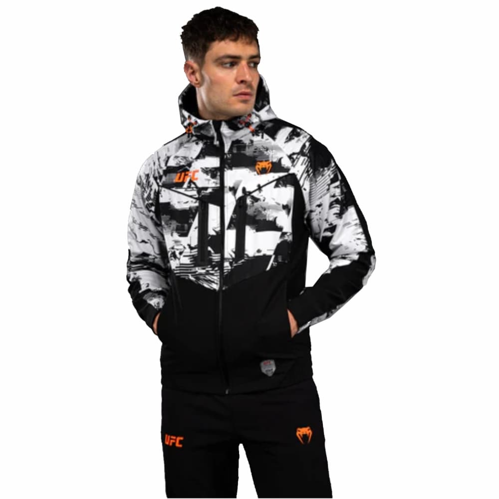 La sudadera con capucha UFC Zenith by Venum Authentic Fight Week Zip para hombre es una sudadera informal para hombre confeccionada con tejido de alto rendimiento y acabados premium.