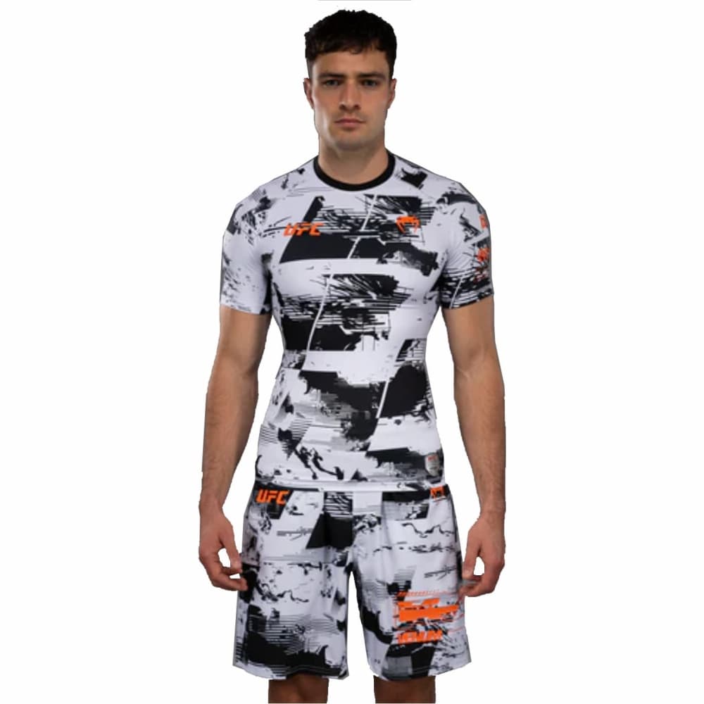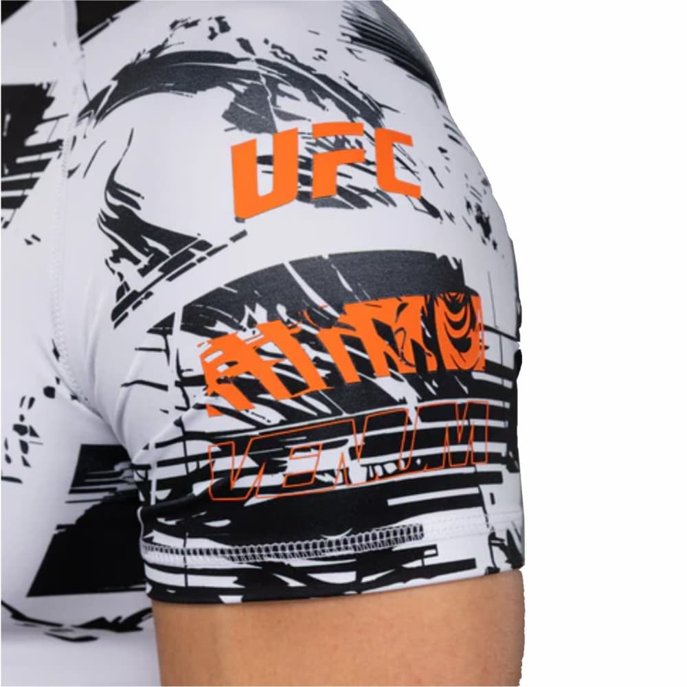 La rashguard de manga corta UFC Zenith by Venum Authentic Fight Week Performance para hombre funciona como una segunda piel para brindar protección contra lesiones y libertad de movimiento durante el grappling. Su tecnología de compresión también favorece la recuperación muscular.