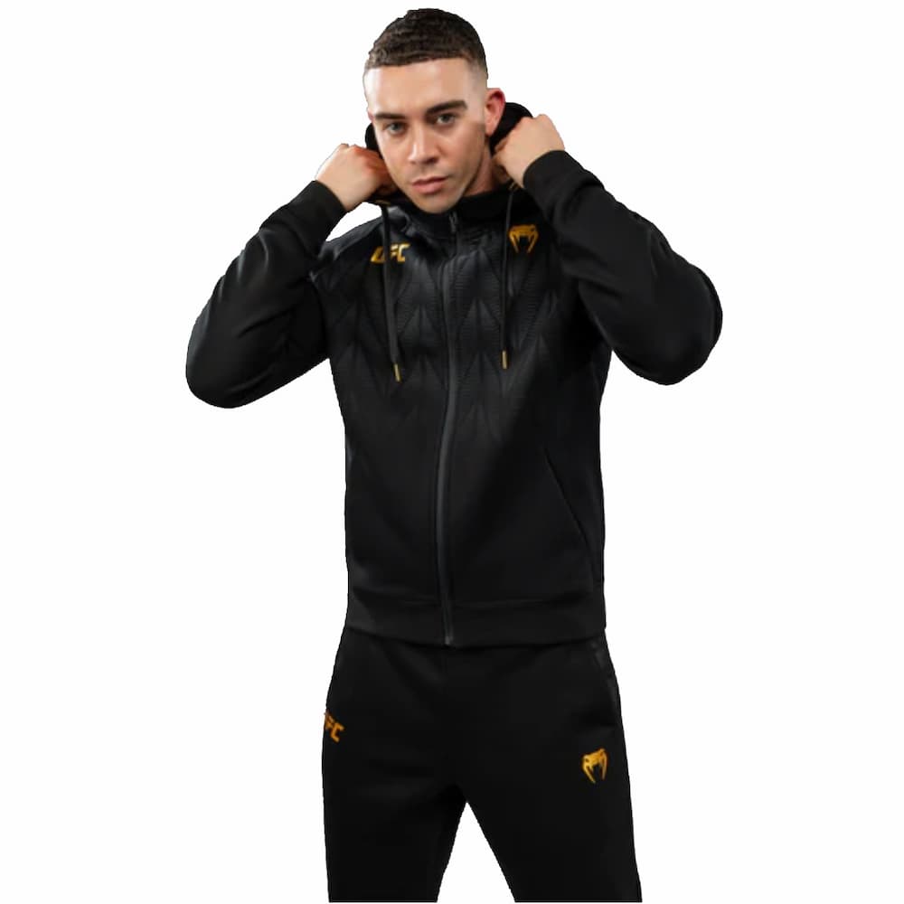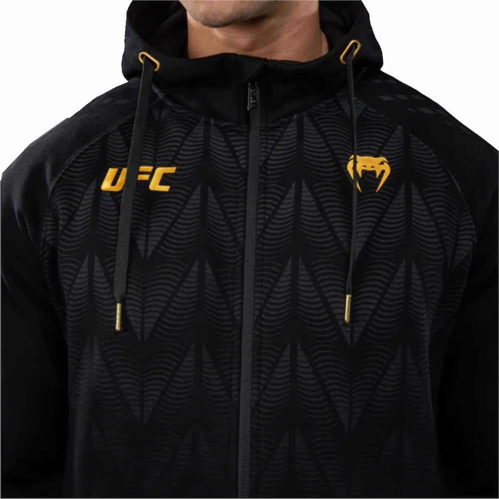 La sudadera con capucha y cremallera UFC Zenith de Venum Replica para hombre cuenta con bolsillos laterales abiertos y capucha con cordón ajustable. Los logotipos de Venum y UFC se ubican en el pecho y la capucha.