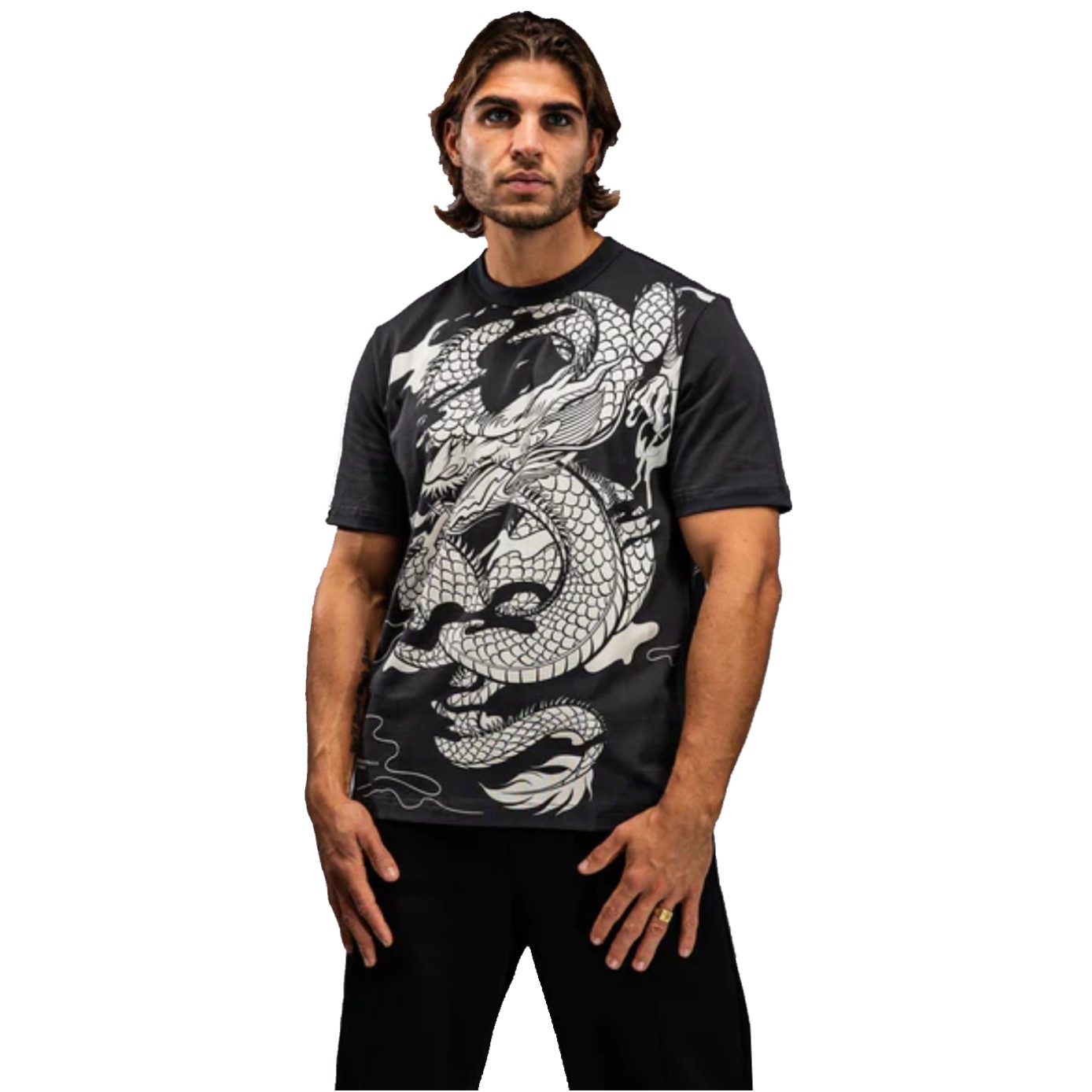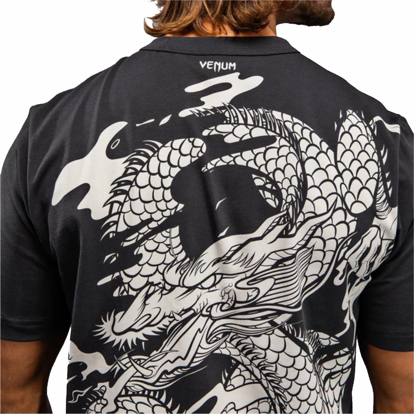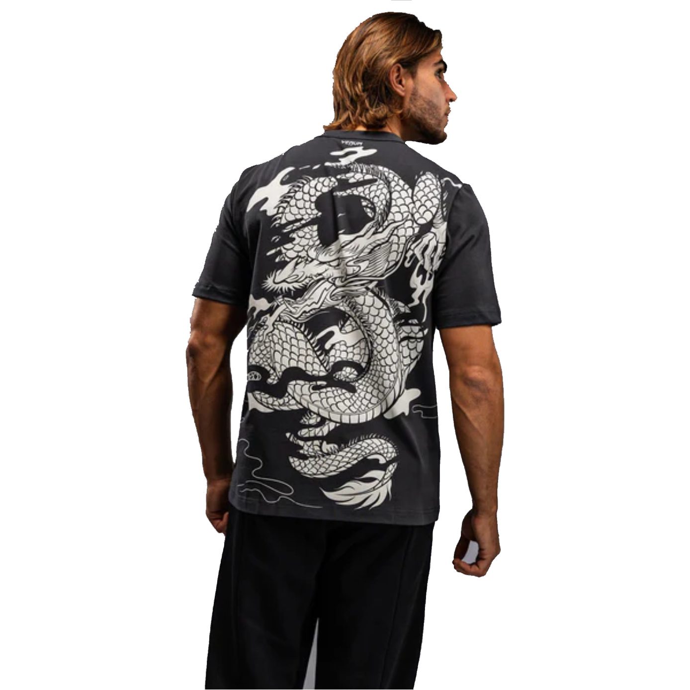 La camiseta Venum Dragon’s Flight para hombre es una camiseta gráfica de cuello redondo con el intrincado diseño de un dragón chino, capturado en pleno vuelo y en llamas, en blanco crema. El diseño abarca el pecho y la espalda completa de esta camiseta gris carbón. Una pequeña etiqueta bordada con el logotipo de Venum en la manga le da el toque final.