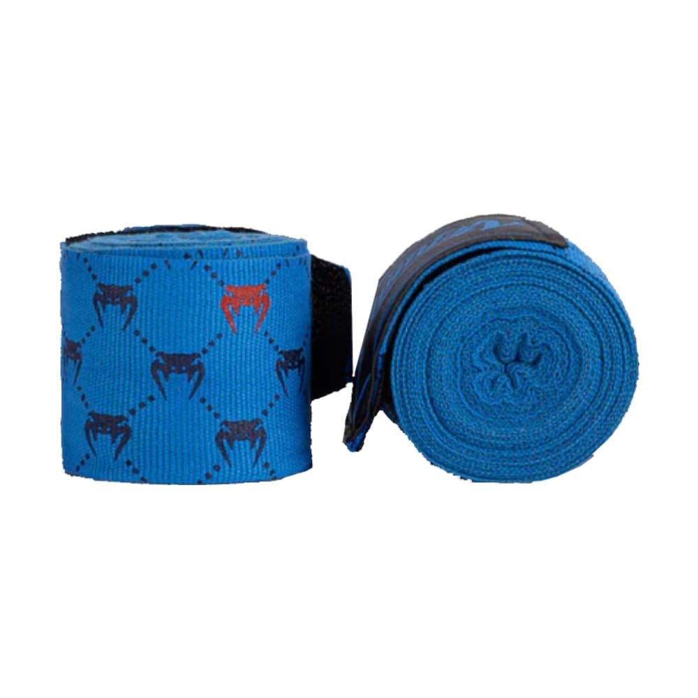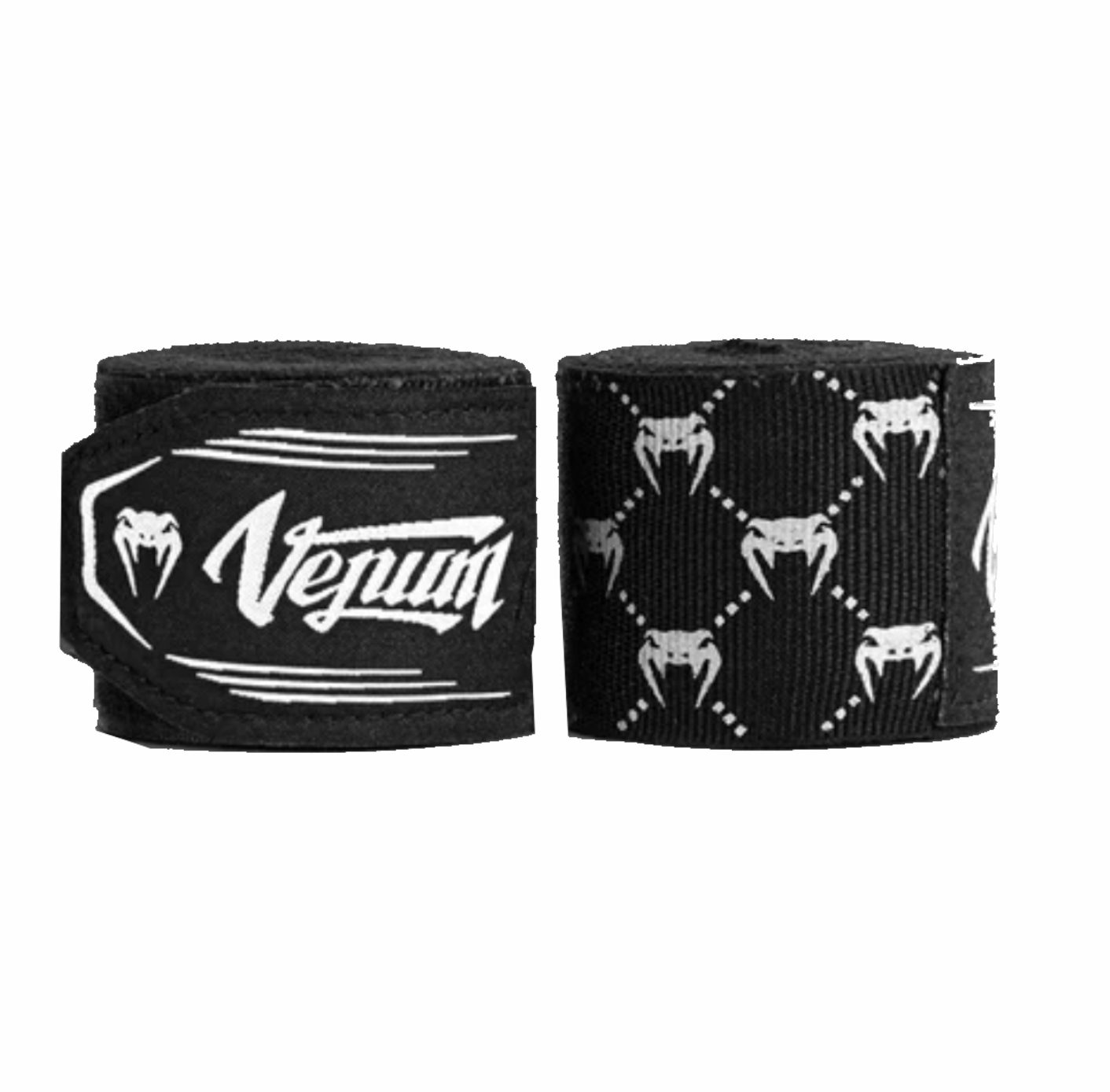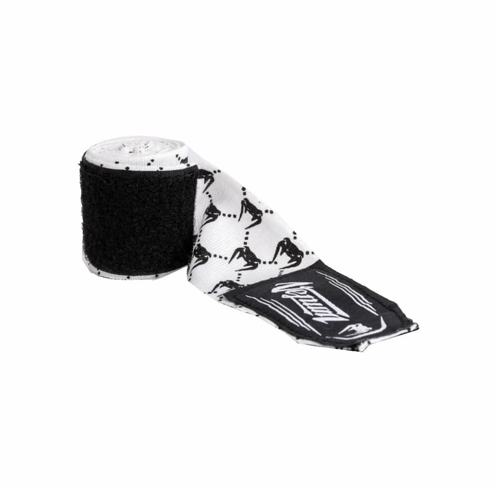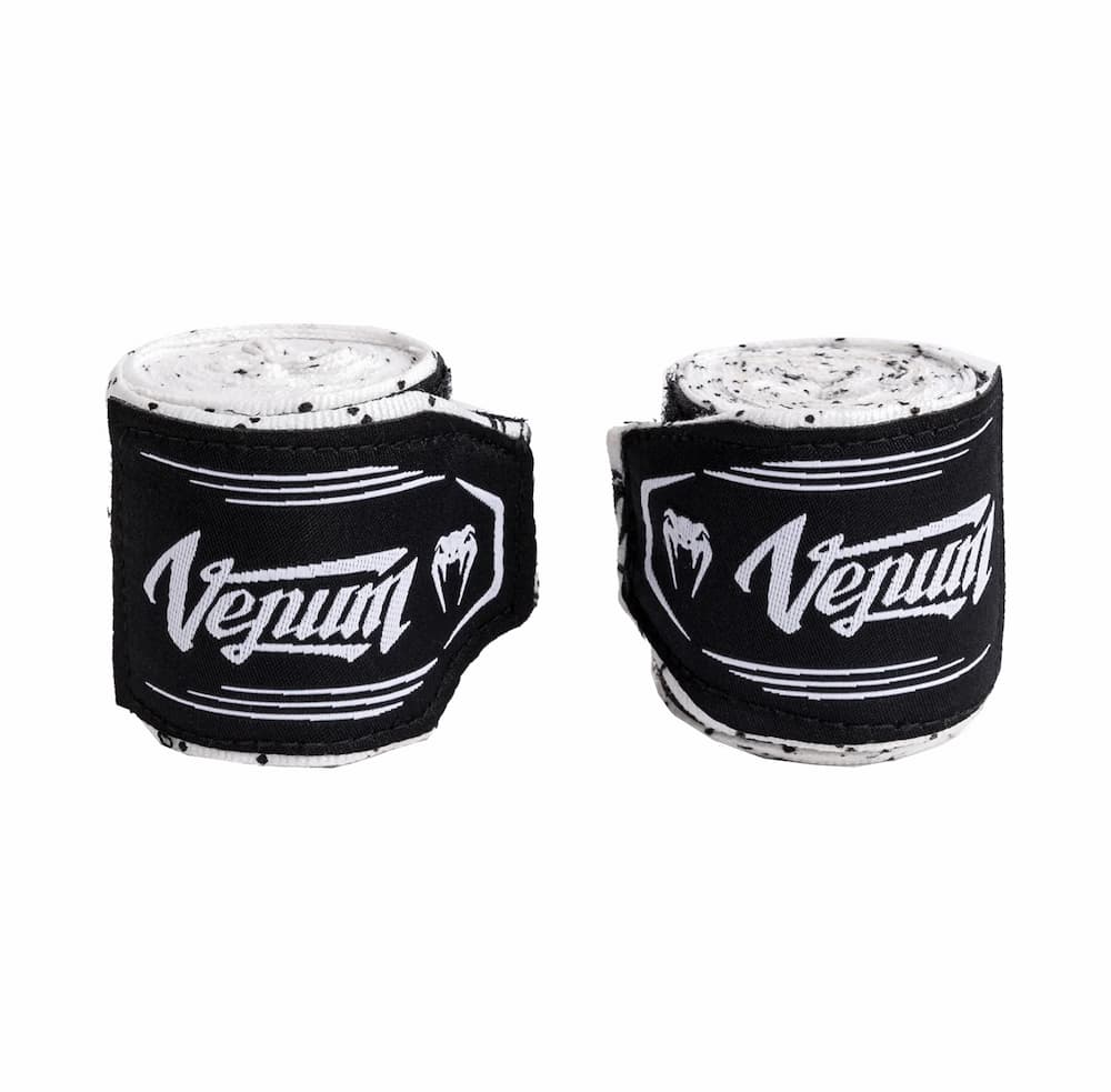 La combinación de blanco y negro presenta el logotipo de Venum sublimado repetido a lo largo de la venda, con un parche de la marca en el cierre. Aptas para boxeo, muay thai, MMA y otros deportes de combate.