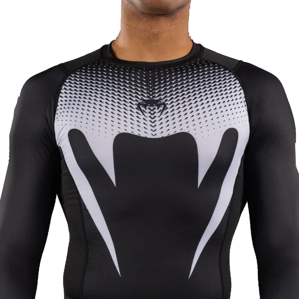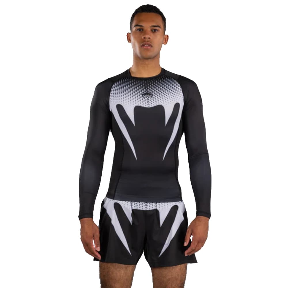 Colección Venum No Gi Aprobada por la IBJJF: esta rashguard de manga larga, oficialmente clasificada y aprobada por la IBJJF, está diseñada para entrenamiento y competición de jiu-jitsu y MMA. Proporciona una compresión muscular óptima, ayuda a prevenir quemaduras en el tatami y lesiones por fricción, y garantiza comodidad y rendimiento durante el trabajo de suelo intenso.