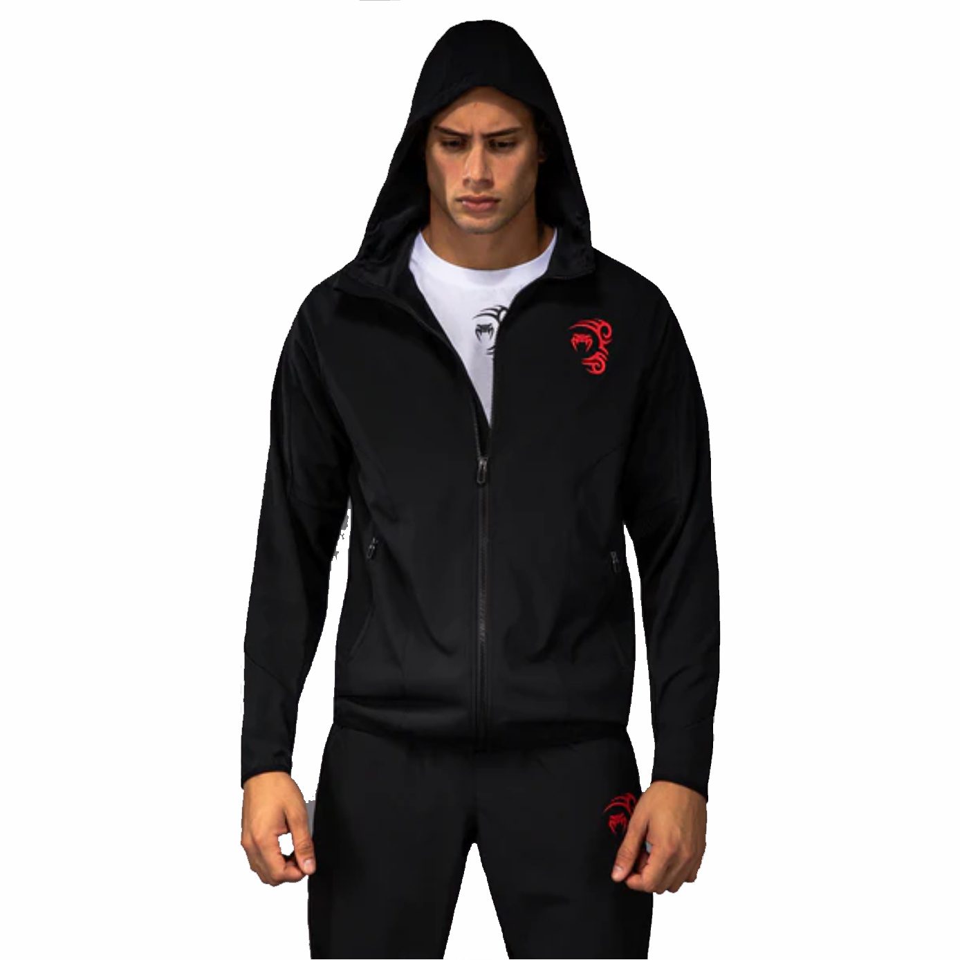 En la naturaleza, solo los más feroces sobreviven. En el ring, Mike Tyson no solo sobrevivió, sino que reinó supremo. La viva imagen del instinto, la explosividad y la intensidad pura, Tyson se movía como un depredador con un solo propósito. ¿Su símbolo? El tigre: poderoso, preciso e imposible de ignorar. Presentamos Venum x Mike Tyson: Tiger, una línea de ropa y equipamiento de boxeo fruto de la colaboración, diseñada para quienes entienden que la grandeza no se regala, se conquista. La chaqueta deportiva Venum x Mike Tyson: Tiger es una chaqueta con capucha y cremallera completa, confeccionada con un tejido técnico ligero. Úsala sobre tu ropa de entrenamiento o combínala con ropa urbana.