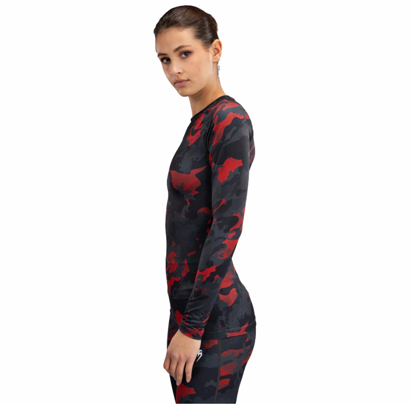 Presentamos Venum x Sophia Rose. Una nueva y sorprendente colección curada por la dinámica atleta y entrenadora de fitness de Venum, Sophia Rose, diseñada específicamente para la mujer contemporánea que valora la fina combinación de diseño funcional y feminidad feroz. Audaz y sin complejos, cada pieza de esta distintiva colección refleja la filosofía personal de Sophia Rose hacia el fitness y la vida, caracterizada por la fuerza, la resistencia, la confianza y la absoluta implacabilidad. La camiseta de manga larga para mujer Venum x Sophia Rose en camuflaje rojo urbano está diseñada para deportes de combate y entrenamiento de alta intensidad. La tela Dry-Tech compresiva abraza tu cuerpo mientras absorbe el sudor para que te mantengas cómoda a medida que tu entrenamiento se intensifica. El estampado de camuflaje sublimado aporta las vibraciones rudas, mientras que los logotipos en blanco rematan esta prenda de rendimiento femenina.