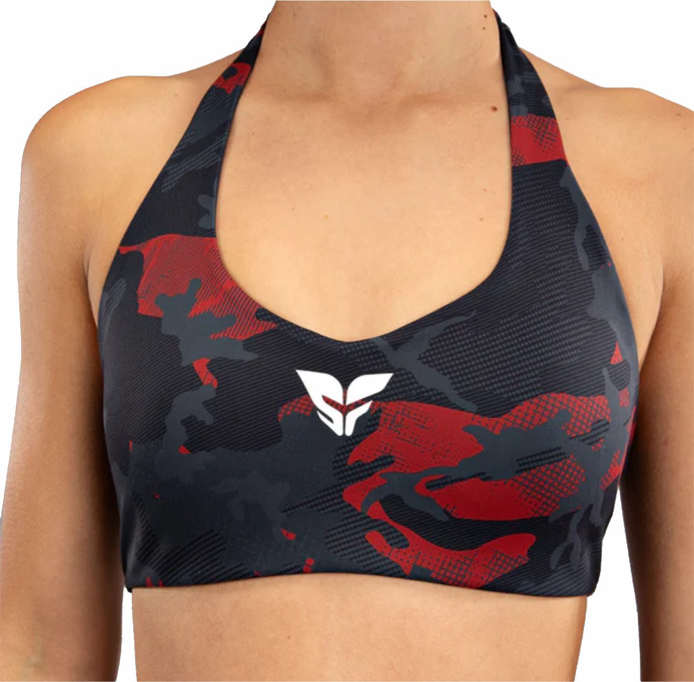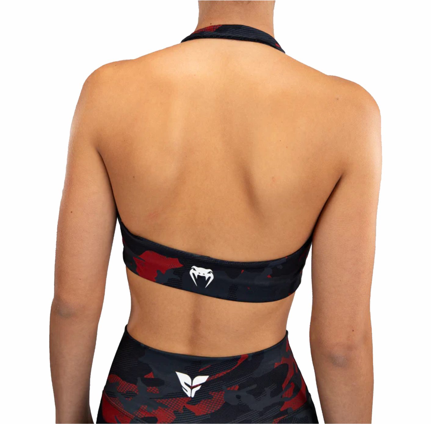 Presentamos Venum x Sophia Rose. Una nueva y sorprendente colección diseñada por la dinámica atleta y entrenadora de fitness de Venum, Sophia Rose, diseñada específicamente para la mujer contemporánea que valora la fina combinación de diseño funcional y feminidad feroz. Audaz y sin complejos, cada pieza de esta distintiva colección refleja la filosofía personal de Sophia Rose hacia el fitness y la vida, caracterizada por la fuerza, la resistencia, la confianza y la absoluta implacabilidad. El sujetador deportivo Venum x Sophia Rose en Urban Red Camo es un impresionante sujetador con cuello halter en la espalda abierta que combina líneas femeninas y el toque rudo del estampado de camuflaje. Los logotipos blancos de Venum y Sophia Rose rematan el diseño